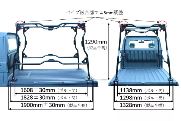 本製品は、軽トラの一般的な形状に合わせた設計となっております。